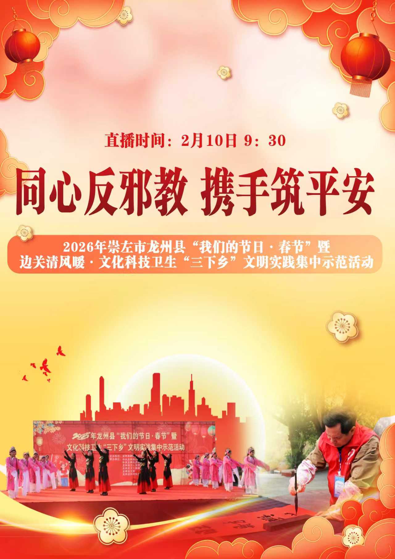 【直播预告】同心反邪教·携手筑平安——龙州县春节文明实践盛会邀您云端相聚