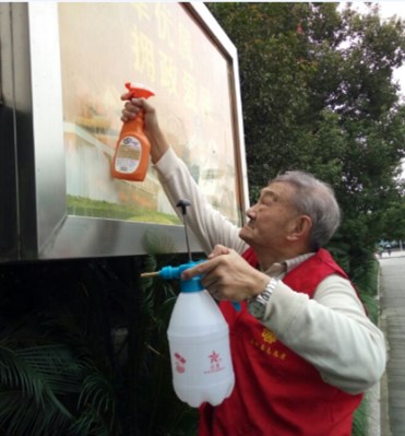 今年80岁的李炳才是四川省凉山州冕宁县人,1956年参加工作,年轻时在哈尔滨、乌兰浩特、四川阿坝州等地从事野外林木勘察设计工作。1998年,已退休9年的他回到爱人的老家岳池县居住。退休后,他把大量时间花在公益活动上,在岳池县青少年活动中心、城南社区、水晶城小区、园田路书店,都是他服务过的地方。因为县城文体广场环境优美,是县内最大的一个市民休闲活动广场,每天早晨和晚上来广场跳舞、锻炼、休闲的市民很多。李炳才每天都会早早起床到广场上检查是否出现邪教宣传品,如果出现邪教宣传品则马上用自带的工具清除邪教的“牛皮癣”,让大家有一个干净的休闲锻炼场所。