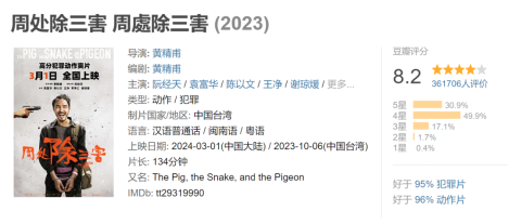《周处除三害》剧情迭宕起伏,包袱不少,尺度不小,拍摄也很有技巧,观影中我一直为剧情所吸引,观后多日仍对某些场景印象深刻。虽然编剧纯属虚构,也有一些不近情理的地方,但总体上逻辑与故事脉络清晰,于种种超现实的荒诞、巧合呈现中,表达了导演的创作目的。作为一部集动作、悬疑、犯罪于一体的商业类型片,算是比较成功的。尤其是这部电影深刻揭示了人性、邪教和台湾社会的某些问题,具有一定的思想深度和社会意义,这应该是它文宣不多却火爆出圈的一个重要原因吧。