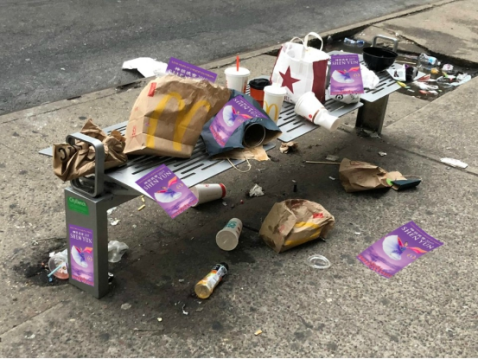 ▲国外街头遗留的“神韵”传单(紫色)垃圾场景