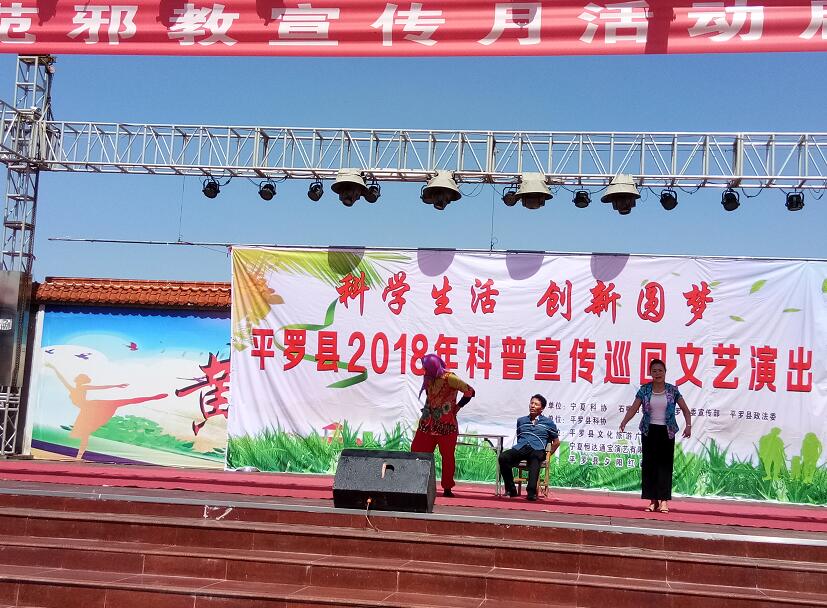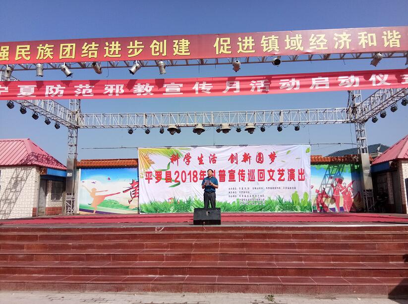 7月16日上午,由宁夏回族自治区反邪教协会、石嘴山市科协、平罗县委宣传部、平罗县政法委联合主办,平罗县反邪教协会承办的宁夏防范邪教宣传月活动启动仪式暨平罗县2018年科普宣传巡回文艺演出,在平罗县黄渠桥镇拉开帷幕。