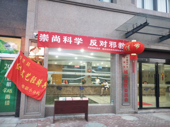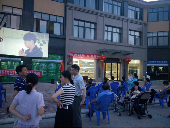 7月14日晚,江西省浮梁县防范办以城北社区党员服务队送电影进社区活动为契机,依托“党建+平安建设”为载体,开展了反邪教宣传进社区活动。