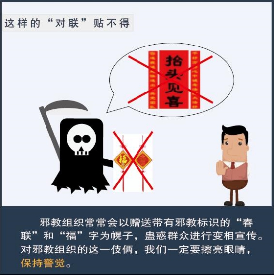 年末岁首,喜气洋洋。不过,树欲静而风不止,民欲安而邪不休。在这送犬迎猪之际,防火防盗还要防邪教。春节防邪教,这些“礼物”不能要!