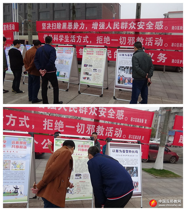 为进一步增强妇女干部职工防范邪教和自我保护意识,提高广大群众,识邪、拒邪、反邪能力。2019年3月1日至13日,广西防城港市港口区政法委携手兄弟单位,借助“三·八”国际妇女节港口区妇女干部职工趣味游园活动及在各个街道办、社区、步行街繁华路口集中开展反邪教警示教育宣传。