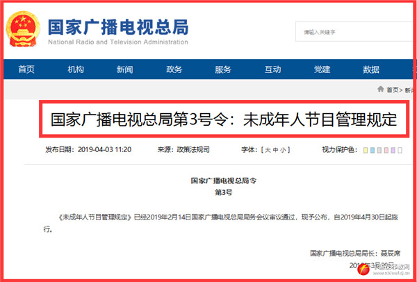 未成年人节目管理规定(全文)