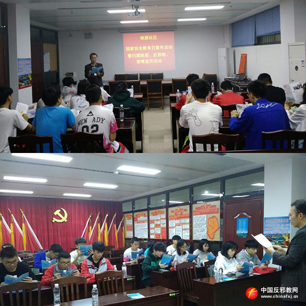 4月14日上午,鱼峰区桃源社区组织辖区青少年开展了2019年全民国家安全教育日宣传教育活动暨反邪教、禁毒、扫黑除恶宣传教育活动。社区工作人员给全体青少年发放国家安全法、反邪教、禁毒、扫黑除恶宣传手册,并宣讲了国家安全法以及反邪教相关知识。青少年们纷纷表示,通过参加这次宣讲,进一步认识到国家安全工作以及反邪教的重要性,依法维护国家安全、反对邪教人人有责,受到了一次深刻的国家安全教育。