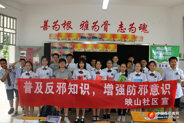 活动中,映山社区工作人员以一个个生动鲜活的事例为同学们讲解什么是邪教,邪教给人们带来的危害,教育学生要崇尚科学,远离邪教,号召同学们行动起来,做反邪教的小谋士、小卫士,向身边的人普及反邪教知识。