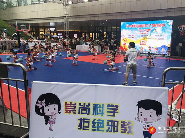 6月1日上午,“小篮球,大梦想”中国小篮球联赛广西柳州赛区启动仪式在柳州市万象城广场隆重举行。柳州市委政法委借机在启动仪式现场开展反邪教宣传活动。