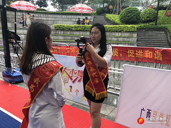 活动当天阴雨绵绵,但是场内外的参赛小选手以及家长们依然欢呼雀跃,兴奋不已,助威声、加油声响彻整个广场,也让整个比赛充满了快乐的氛围。柳州市委政法委通过设立反邪教宣传咨询台,悬挂宣传横幅、摆放宣传展架、LED大屏幕播放反邪教宣传短片等多种方式向来往群众宣传反邪教知识,让群众更直观地感受邪教对于社会的危害,深刻认识反对邪教、远离邪教的必要性。在小朋友激烈的球赛中场休息中穿插反邪教知识有奖问答,紧张的抢答环节让“崇尚科学反对邪教”理念更深入人心。“广西反邪教”微博对这场宣传活动进行网络全程直播。