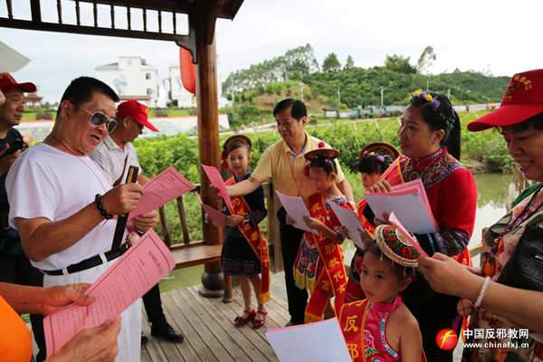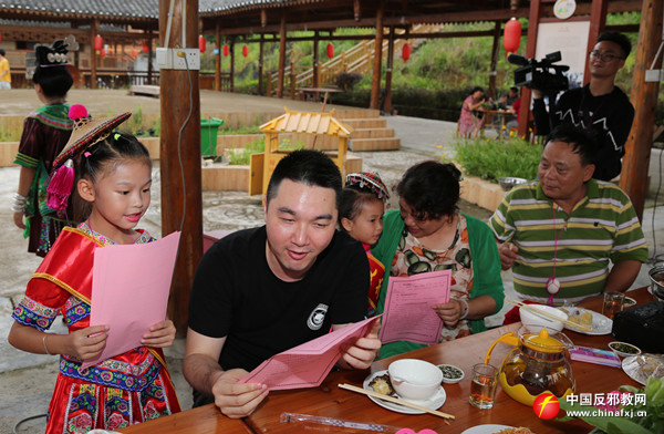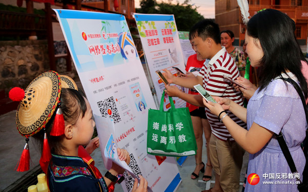 闯过“三关”酒阵入寨的游客积极参与反邪教宣传。