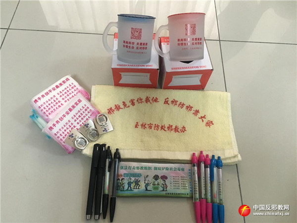 玉林市委政法委集思广益,深入挖掘宣传礼品普法新形式,在纪念礼品中融入反邪教元素,以日常生活用品作为宣传礼品样式,将反邪教的知识要点、标语集锦以及网络签名活动流程等内容编印在宣传礼品上,并通过开展宣传活动发放到群众手中,这样的宣传方式贴近群众日常生活实际,极具灵活性、趣味性和实用性。
