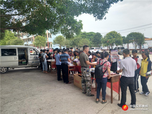 为进一步增强广大师生家长防邪、反邪意识,9月1日,广西壮族自治区来宾市兴宾区三五镇反邪宣传工作组利用开学季,走进三五镇初级中学,大力开展反邪教宣传活动,厚积反邪教土壤,筑牢校园反邪教根基。