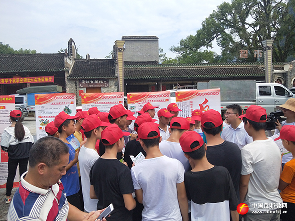 九月的国家级4A景区黄姚古镇,山青、水秀、奇石、洞幽、树绿、竹美,连成了一幅秀丽的画卷,吸引了无数游客。9月10日,广西壮族自治区贺州市昭平县委政法委联合黄姚镇政府、县公安局、县司法局、黄姚旅游开发区执行局等单位以及黄姚中学开展以“反邪教 防暴恐 保平安”为主题的宣传活动,让反邪教宣传活动走进黄姚景区的大街小巷。
