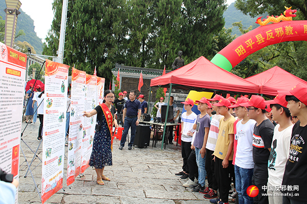 图为工作人员讲解反邪教知识