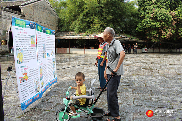 图为群众观看展板反邪教知识