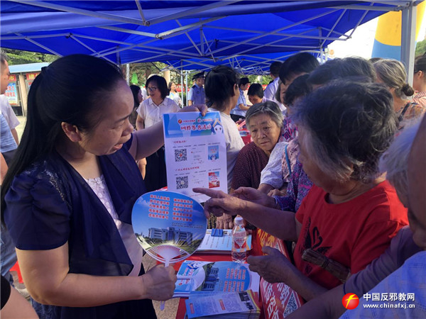 工作人员在引导群众进行拒绝邪教网签活动。