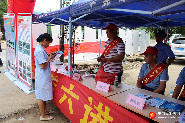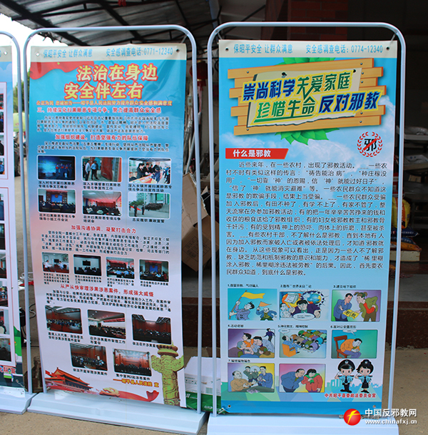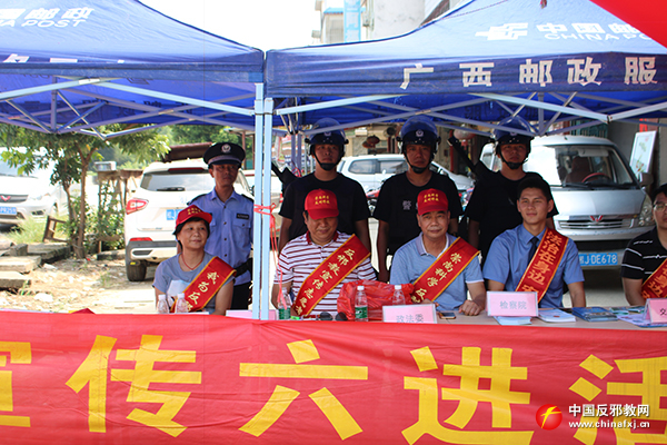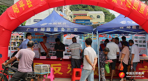 为进一步扩大反邪教宣传工作的广度和深度,提高人民群众对邪教的防范意识和抵御能力,8月29日至9月18日,广西壮族自治区贺州市昭平县委政法委联合政法各部门,在全县12个乡镇开展“反邪教 促和谐 保平安”巡回宣传活动。
