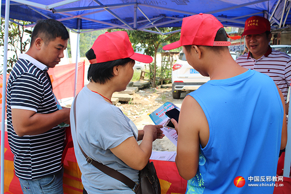 贺州市昭平县地处广西东部,属典型的山区县。由于地理位置的局限,许多昭平年轻人外出广东打工,家里多是老人和孩子,在防范和抵御邪教方面存在一定的局限性,加强反邪教宣传警示教育,提高群众的防邪反邪意识,显得十分重要。宣传工作组每到一个乡镇,通过悬挂横幅、摆放展板、发放反邪教宣传资料、播放反邪教宣传片等形式进行宣传,工作人员指导群众关注“中国反邪教”“桂风起”微信公众号,并参与“对邪教说不”“广西文明家庭拒绝邪教”网络签名活动,使群众通过微信平台了解更多反邪教知识,认清邪教组织的罪恶本质和危害,自觉远离邪教,抵制邪教侵害。