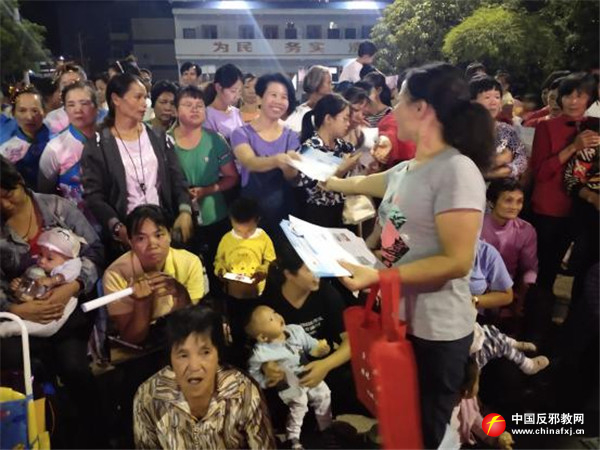 9月24日晚,忻城县大塘镇在素江广场举办“讴歌新时代 文化进万家”文艺大展演,县委政法委联合大塘镇组织工作人员在晚会活动现场,开展以“崇尚科学、反对迷信、拒绝邪教”为主题的反邪教宣传活动。通过悬挂宣传横幅、发放宣传资料、现场讲解等形式开展宣传,用生动鲜活的事例,揭露邪教的本质、特征和危害等知识,告诫群众要崇尚科学,远离邪教。
