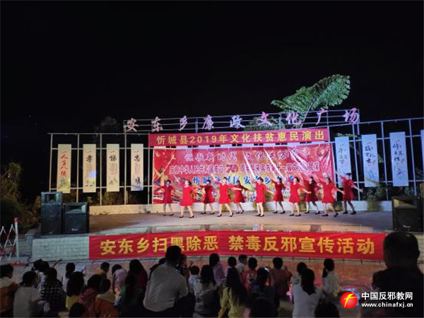 9月28日晚,以“讴歌新时代 文化进万家”为主题的文艺汇演在忻城县安东乡安东村廉政文化广场盛大举行,吸引附近村屯近500余人到场观看。忻城县委政法委、安东乡政府在现场开展以“扫黑除恶 禁毒反邪”为主题的宣传活动。