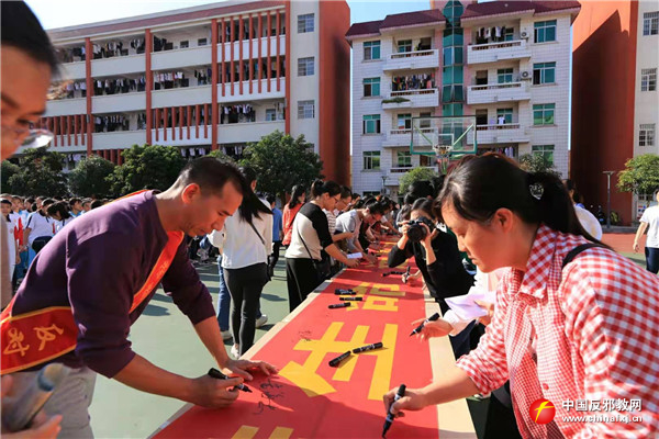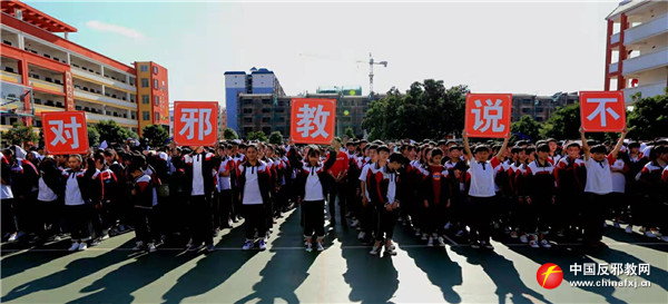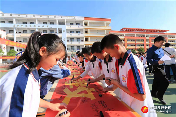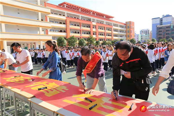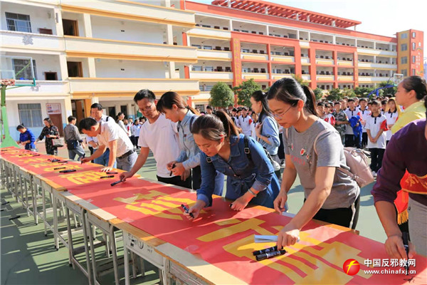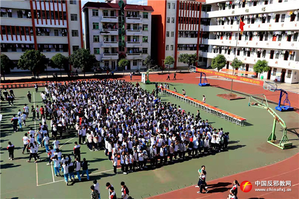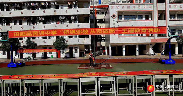 为深入开展校园反邪教宣传教育,引导学生树立正确的世界观、人生观、价值观,2019年10月18日,广西壮族自治区百色市田阳县组织师生开展“拒绝邪教、从我做起”签名活动。当天下午,3000多名师生集结在操场高高飘扬的红旗下,老师、学生代表分别进行“拒绝邪教、从我做起”宣誓。
