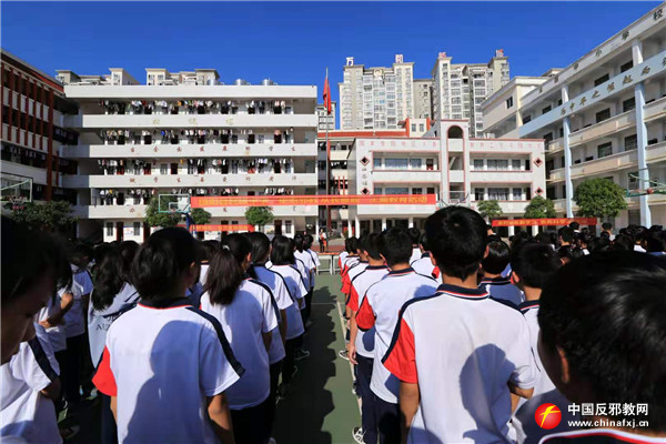 学生代表农佩蓉宣誓说:“邪教是万恶的化身,它编造邪说、聚敛钱财、秘密结社、危害社会,对人们进行着精神的控制,它反人类、反科学、反社会、反政府,是社会的毒草。我们一定要清醒地认识邪教的本质,坚决抵制邪教;让我们尊重生命,崇尚科学,远离邪教吧!让我们共同加入到反邪教的行列中来,共同营造一个平安、文明、和谐的校园环境,使我们的校园正气高扬!”