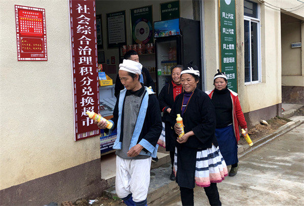 白裤瑶同胞到社区反邪教固定宣传点领取反邪教宣传品