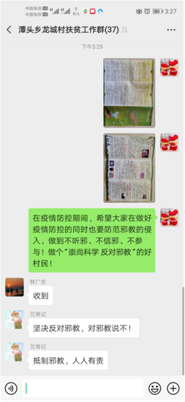 四是通过县委宣传部、县委政法委微信公众号向全县单位干部、职工、群众宣传,疫情防控与反邪教宣传同步进行,严防邪教组织利用疫情散播歪理邪说。