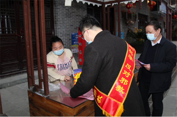 活动中,工作人员带着精心编印的反邪教宣传单,走上街头,走向小区,走到工地,走入商铺,走进菜市,多方位向群众发放反邪教宣传材料,现场向群众解说疫情期间如何文明祭祀,如何破除迷信,如何识别和反对邪教,以拉家常方式叮嘱他们向身边的人宣传反邪教知识,带动大家一起来抵制迷信邪说、丧葬陋习,摒弃不文明祭祀行为,积极参与疫情防控、反邪教和移风易俗活动,用实际行动践行“平安清明”。同时,还引导群众用手机扫二维码参与中国反邪教网开展的“对邪教说不”活动,做到线下线上同步反邪教。