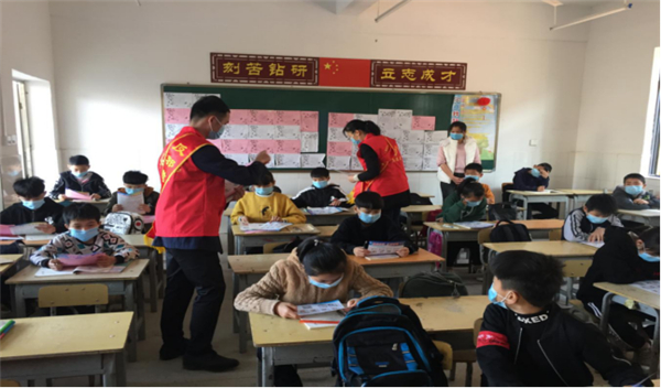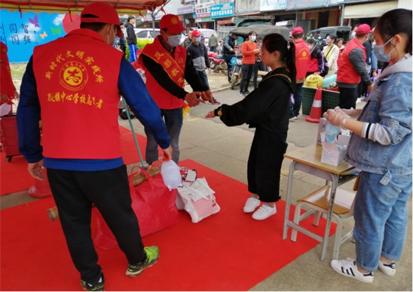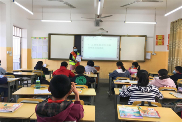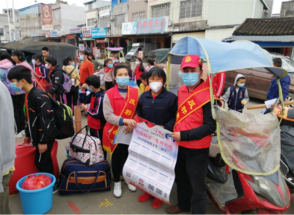当前,随着中国抗击新冠病毒疫情已经取得阶段性的胜利,4月26、27日,广西来宾市武宣县各小学的五、六年级和部分中学初二的学生陆续返校复学。武宣县委政法委积极响应上级要求,在做好疫情防控工作,确保师生安全健康的同时,认真组织各乡镇反邪教志愿者前往学校协助学校领导维护开学秩序,确保学生平安返校复学,并抓住机会向广大师生、家长开展疫情防控、防邪反邪宣传“第一课”活动。