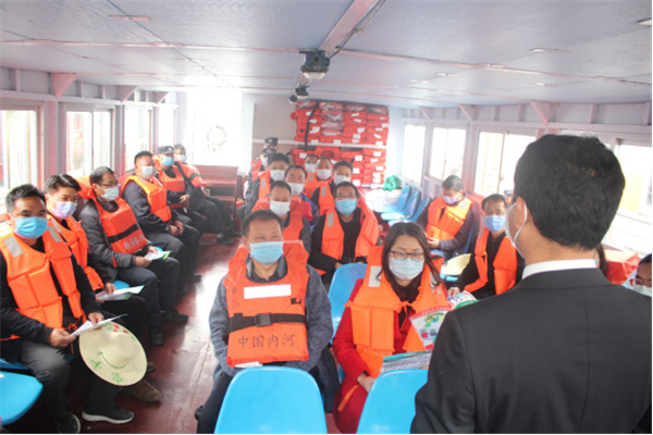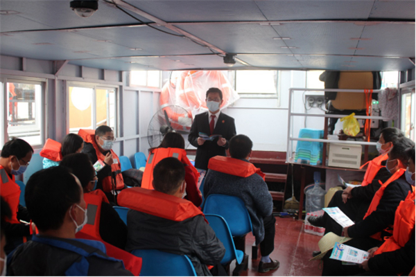 隆林各族自治县制作反邪教宣传标语十余条在航运客船上悬挂,每位船长(驾驶员)身着“我为反邪教代言”宣传服,并安排2名政法干警向来往乘客讲解“法轮功”“门徒会”等邪教的危害特点以及如何防范知识,进一步提高群众的识邪、防邪能力。