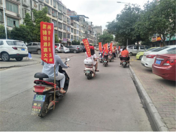 5月14日上午,一支穿梭在柳江区大街小巷的反邪教宣传骑行队吸引了广大群众的目光。反邪教巾帼志愿者以骑行宣传这种特殊的形式向群众进行反邪教宣传,当印制有反邪宣传标语的彩旗随着骑行队的一路骑行随风飘起,醒目的反邪标语更是吸引了路人关注的眼球,大家纷纷停留驻足观看,对邪教的危害有了更为深刻和直观的认识。反邪巾帼骑行队用微笑和汗水换来了群众的赞许,成为了一道靓丽的风景线,更让反邪知识深入人心。