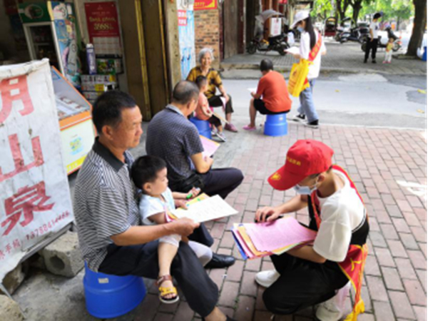 向居民发放宣传资料
