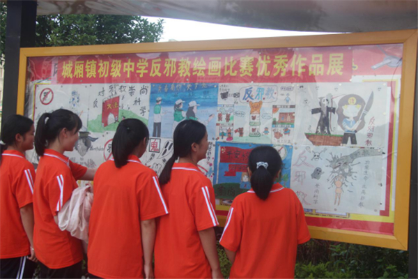 为提升全县校园反邪教宣传效果,提高广大师生对邪教社会危害性的认识,自觉养成文明生活、拒绝邪教的生活习惯,该县县委政法委将城厢镇初级中学树为反邪教教育示范学校,在该校开展系列反邪教宣传教育活动。6月底,组织全校师生参与“文明生活,远离邪教”为主题的拨河、作文、绘画比赛,将获奖作文、绘画作品向全体师生展示,提高师生参与反邪教宣传活动的积极性。此次宣传活动共有53个教学班3000名师生参与,收到参赛作文352篇、绘画108幅。并在学校内外显眼位置的多处反邪教宣传教育专栏,增加获奖作文和绘画作品内容。