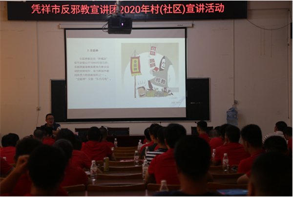 为进一步增强基层党员的防范打击邪教意识,筑起南国边关千里无邪防线,引导辖区内基层党员干部和广大人民群众追求积极健康的生活,7月13日下午,广西凭祥市在市委党校开展以“发挥边境党员岗哨作用,筑牢南国边关无邪屏障”为主题的反邪教宣讲活动。