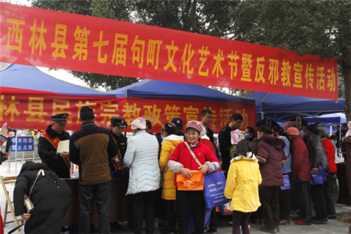 12月19日,广西壮族自治区百色市西林县隆重举行第七届句町文化艺术节暨第十届砂糖桔产业文化、茶产业文化展示周活动。来自桂滇黔边界的2万多商家、游客、文化采风人士、各族群众前来参加活动,与西林县15多万壮、汉、瑶、苗、仡佬族人民一起,感受句町文化特色文化的魅力,分享节日的快乐。中国茶文化协会的领导、广西壮族自治区有关部门和百色市有关领导出席活动。借此良机,西林县政法委联手广西反邪教网开展“第七届句町文化艺术节暨反邪教宣传活动”,取得显著成效。