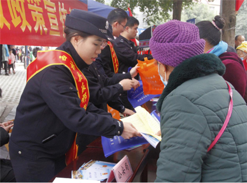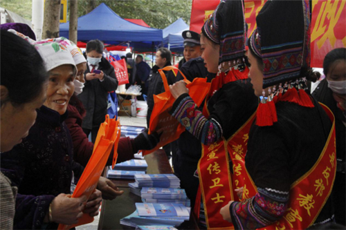 群众争先恐后领取宣传资料