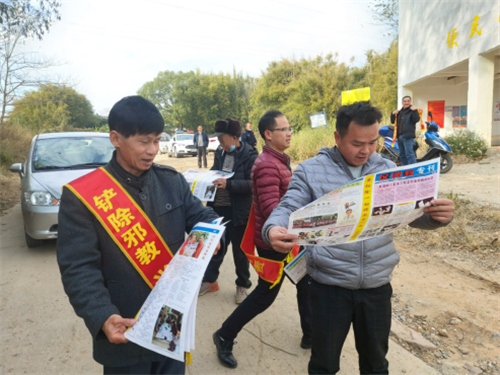 每到一个村,工作人员都用通俗易懂的语言,为群众讲述邪教的危害以及防范办法,并重点给村干部讲解邪教的骗人手法,让他们回去后向村民群众普及反邪教知识,进一步扩大反邪教宣传教育力度,筑牢农村反邪“铜墙铁壁”。
