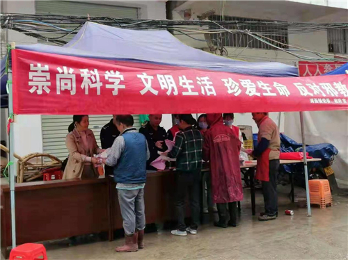 古城镇结合赶集日开展宣传。春节期间,街头集市热闹非常。古城镇利用赶集日人流量大的有利时机,组织综治办、司法所、派出所在路口设立宣传摊位,悬挂起禁毒反邪标语,向来往赶集采买年货的群众宣讲禁毒和拒绝邪教知识,并发放了图文并茂、贴近生活、通俗易懂的宣传单页、知识手册,引来不少群众纷纷驻足观看,营造了浓厚的宣传氛围。