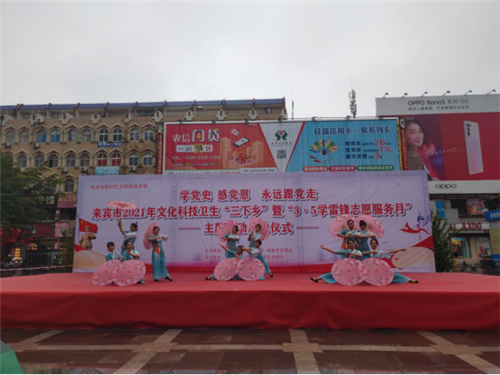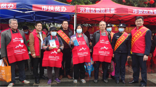 3月5日,广西壮族自治区来宾市2021年文化科技卫生“三下乡”暨“学雷锋志愿服务月”主题活动在兴宾区迎宾广场举行启动仪式。为进一步提高基层群众反邪教意识,强化群众识邪防邪能力,来宾市委政法委积极组织“学雷锋”志愿者,利用“三下乡”活动的有利契机开展反邪教警示教育宣传。