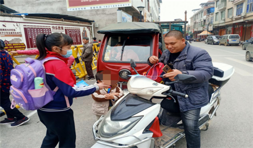 反邪教小小志愿者给家长发放宣传资料