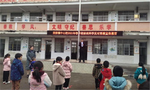 四排镇中心校校长国旗下讲话开展反邪教宣传教育