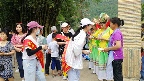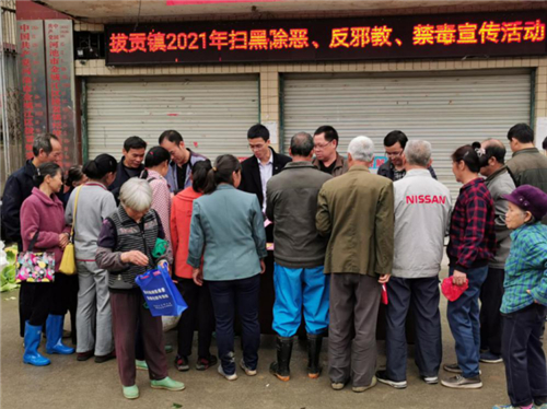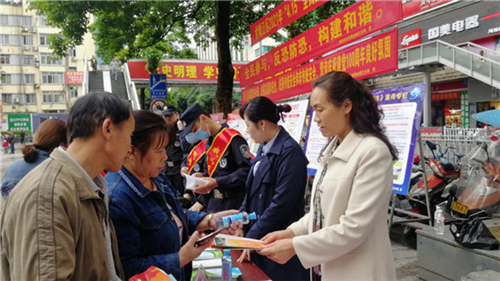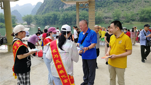 “阿姨,邪教伤害你我他,要记住坚决抵制邪教渗透。”四月的广西河池,迎来了三月三时节,各民族同胞聚集街头欢歌、汇聚江边饮宴,是广西河池人不变的传统。自4月14日起,广西河池市各地政法部门工作人员纷纷化身成为“反邪卫士”,走上人口密集的商业广场、街头闹市、旅游景点和基层社区等地方,有效发挥壮族“三月三”节庆活动特色优势,组成多层次、广角度、全覆盖的宣教阵地,形成了遍布辖区内的基层反邪教宣传阵地。