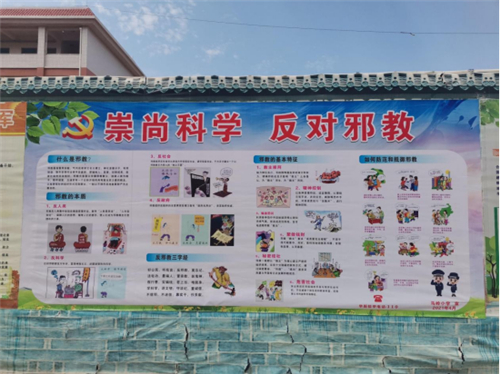 活动中,学校向师生们广泛宣传“什么是邪教”“邪教对社会的危害”“邪教的骗人手段”等知识,并倡议全校师生相信科学,反对邪教,健康生活,预防疾病,遇到邪教,及时报告,构建和谐,从我做起。学校利用班级板报、手抄报、学校宣传专栏、校园广播、电子屏等宣传工具,广泛开展宣传教育活动,营造反邪教警示教育活动氛围,帮助师生直观、形象地认识邪教的危害性;采用“小手牵大手“的形式,向学生家庭和社会宣传反邪教知识。各班召开以“崇尚科学,反对邪教”为主题的班会,组织学生观看反邪教警示教育片,用生动鲜活的实例教育学生自觉树立“崇尚科学,反对邪教”的观念,提高辨别是非真伪的能力,从而增强法律意识,远离邪教。