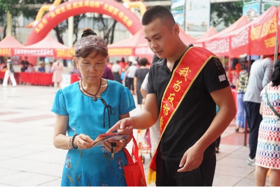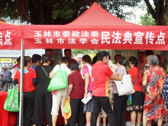 在《民法典》颁布一周年之际,为加强民法典宣传,让民法典走近群众、走近生活,营造良好法治氛围,6月2日,广西壮族自治区玉林市2021年“民法典宣传月”集中宣传活动在青年广场举行,现场开展民法典宣传、法律咨询等服务。玉林市委政法委在此次普法活动中融入反邪教主题。