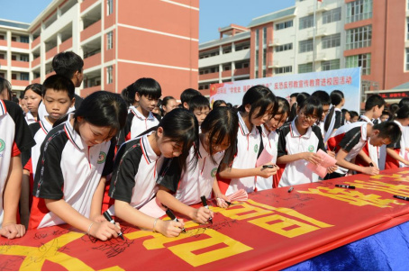 参与一次反邪教签名活动。在现场,参加活动的各中小学校领导及四中师生共同在“热爱生活 崇尚科学 拒绝邪教 倡导文明”横幅上签名,同时,老师还参与“对邪教说不”“广西文明家庭拒绝邪教”网上签名活动,用实际行动坚决反对和抵制邪教。