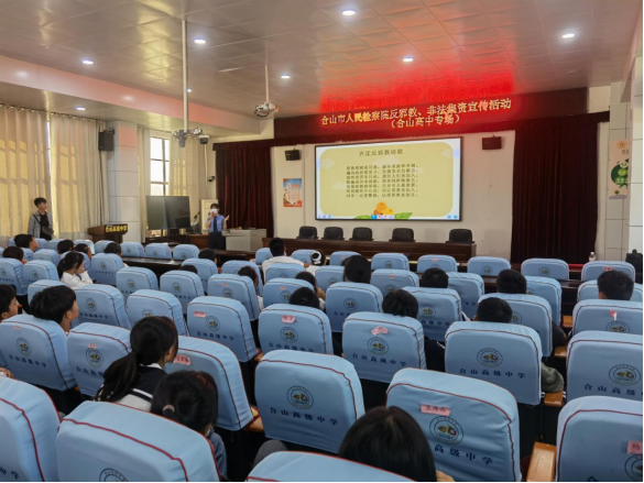 为进一步深化校园反邪教知识宣传教育,提高广大学生对邪教的辨识能力和抵御能力,10月12日下午,广西合山市人民检察院到合山市高级中学,为该校200余名高一新生带来一堂深刻的反邪教警示教育课。