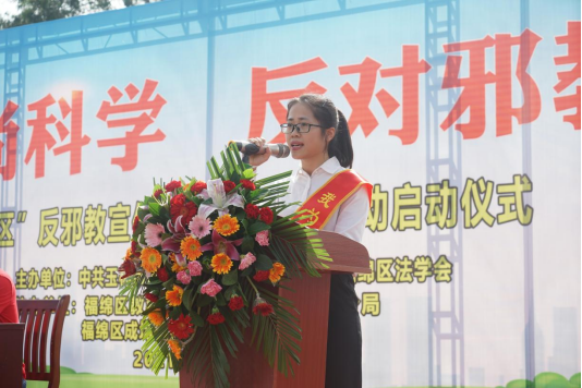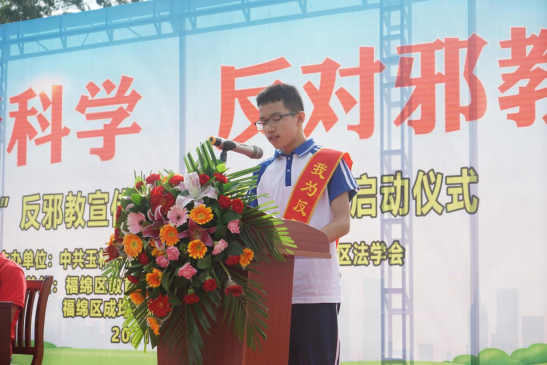 启动仪式上,福绵区委政法委副书记宣布了福绵区“反邪教宣传进校园活动”启动,教师代表宣读反邪教倡议书,学生代表引领同学们一同作出反邪教承诺;现场开展了反邪教知识问答,师生们踊跃抢答,答题正确者奖励精美小礼品;全体师生分批次在“崇尚科学、反对邪教”反邪教宣传条幅上签字,表明自己反对邪教的坚定决心。学生们纷纷表示要积极参与到反邪教宣传活动中,并带动身边亲朋好友共同自觉抵制邪教的侵蚀。