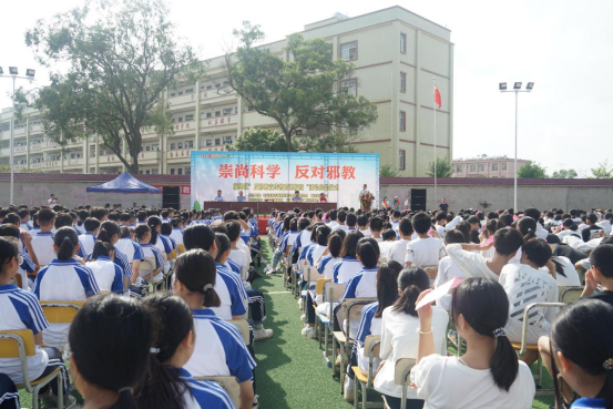 为深入开展反邪教法制宣传教育,进一步提高学校师生防范抵制邪教的意识和能力,近日,由广西壮族自治区玉林市福绵区委政法委、市公安局福绵分局、福绵区教育局、福绵区法学会主办的“反邪教宣传进校园”活动启动仪式在成均镇第一初级中学举行。全校1600多名师生参加了启动仪式。