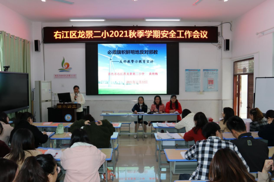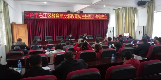举措一:召开反邪教警示教育进校园活动推进大会。2021年12月初,右江区委政法委、教育、公安等部门组织全区中小学校长召开反邪教警示教育进校园活动推进大会,对活动任务要求进行部署。